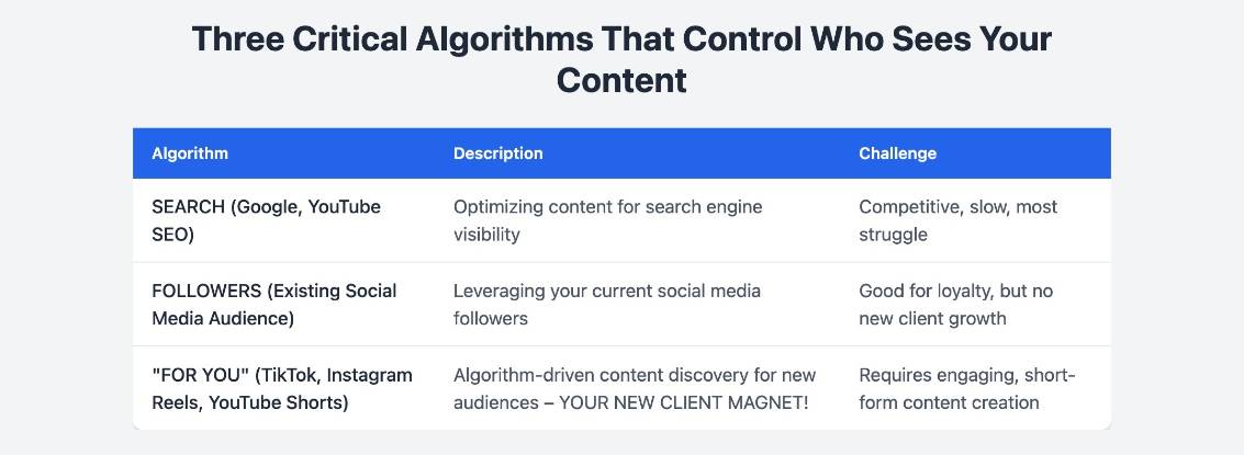 At Elevate Aesthetic Marketing, we understand the THREE CRITICAL ALGORITHMS that control who sees your content – and how to master all of them for your growth.